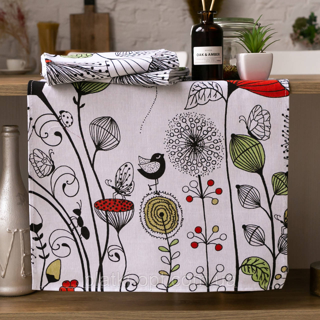 Рушник рогожка набивна - незамінний елемент декору кухні або їдальні. Рушник в українському стилі – сімейний оберіг. Традиційний український орнамент зробить інтер'єр тематичним. Тканина, з якої виконано рушник – 100% натуральна бавовна з ефектом об'ємної вишивки та з фактурою натурального льону. Добре вбирає вологу, не дратує шкіру рук. Легко стирається у делікатну прання при температурі 40 градусів, швидко сохне і легко піддається прасування.